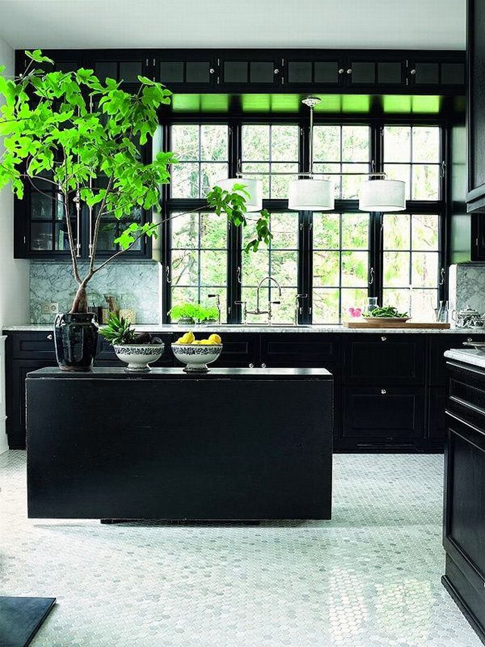Phòng bếp có nội thất màu đen mang lại sự lôi cuốn tiềm ẩn cho khu vực nấu nướng, bằng cách sắp đặt nội thất màu đen ở nơi có ánh sáng phù hợp, bạn không chỉ đem đến một không gian khá thoải mái và còn là nơi truyền cảm hứng cho đam mê cho việc chế biến và phục vụ những bữa ăn gia đình.