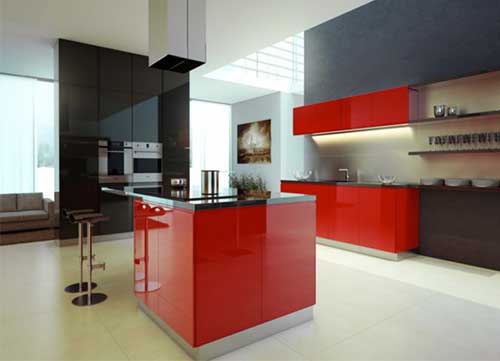 Mẫu tủ bếp acrylic màu đỏ ấn tượng(Mã :4)